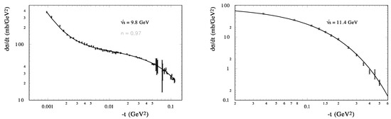 - Khoze, V.A.; Martin, A.D.; Ryskin, M.G. t dependence of the slope of the high energy elastic pp cross section. J. Phys. G 2015, 42, 025003. [Google Scholar] [CrossRef]