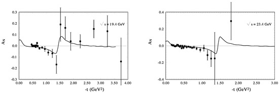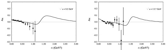 - Buttimore, N.H.; Gotsman, E.; Leader, E. Spin dependent phenomena induced by electromagnetic hadronic interference at high-energies. Phys. Rev. D 1987, 35, 407–412. [Google Scholar] [CrossRef] [PubMed]