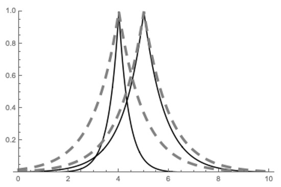 There are different approaches attempting to avoid the problem of the missing totality, mostly they consist of determining a certain ranking index (a crisp number representing the fuzzy number). On the other hand, this leads to a reduction of information. One of the exceptions that we found very elegant and formally founded was defined by Bodenhofer in [46,47]. It works with extending the original fuzzy numbers by constructing their extensional hulls up to the situation when the extended fuzzy numbers can be already ordered regarding their -cuts. Naturally, this approach is very closely connected to the arithmetic of extensional fuzzy numbers and thus, it served for us a motivation, yet our approach comes from a bit more abstract setting and then lands to a particular type of Bodenhofer’s ordering.