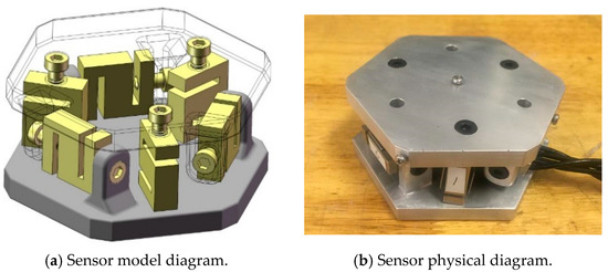 The schematic diagram of the structure of an orthogonal parallel six-axis force/torque sensor is shown in Figure 3.