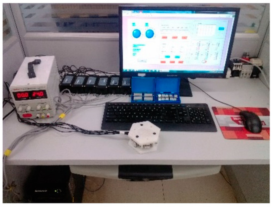 The strain beam structure is located in the middle of the S-type sensor, and the double-bend beam structure used in this paper greatly reduces the overall volume of the sensor and has the advantages of easy processing. The working principle of the strain gauge is that when the S-type sensor is subjected to an external force, its resistance value will change accordingly. Therefore, the strain gauge should be installed at the weakest part of the top of the middle hole. The thickness of the upper and lower beams of the middle hole of the sensor is relatively thin, while the rest is thicker. The thickness of the strain gauge mounting position can be increased by enlarging the distance of the hole, and the rigidity thereof is also greatly improved. A prototype of an orthogonal parallel six-axis force/torque sensor assembled by the upper and lower platforms and the measuring branch is shown in Figure 2, with an overall thickness of 15 mm. The range is 5 kg and the external dimensions are 30 × 20 × 10 mm. Both the force measuring platform and the fixed platform are hexagons with a diameter of 50 mm and a thickness of 8 mm, while the thickness of the column is 6 mm.