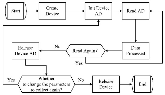 In order to achieve the purpose of improving the accuracy of the loading force, this test uses a 0.5 kg standard weight with an accuracy level of M1. Figure 5 shows the AD acquisition flow chart in the software system, and Figure 6 shows the front panel of the online static loading software system based on LabVIEW.