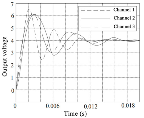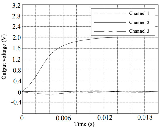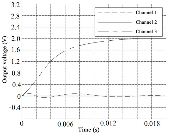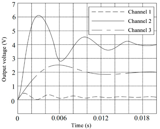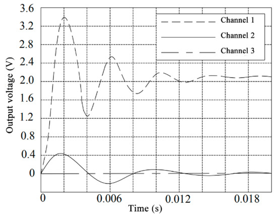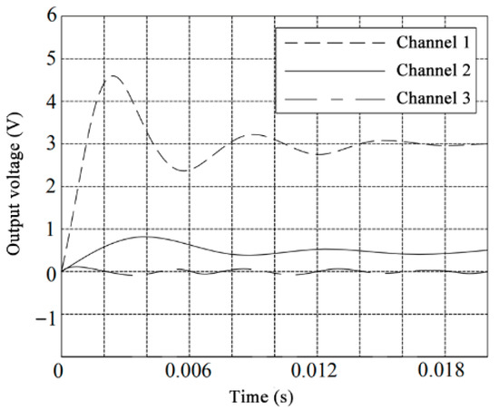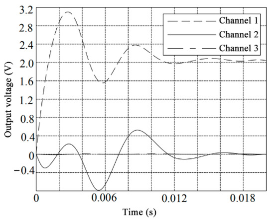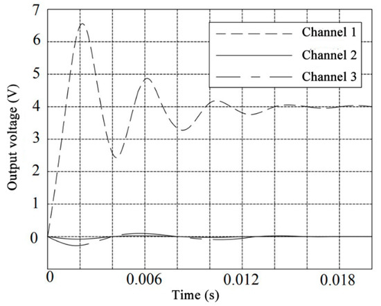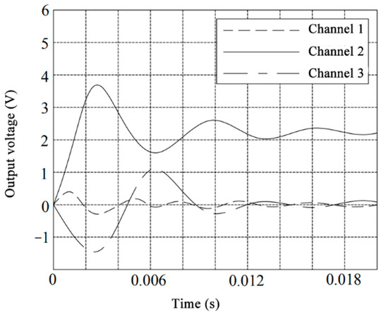 The existing diagonal dominance matrix method is used to dynamically decouple the sensor in order to reflect its decoupling effect. The unit step input signals are then loaded onto channels 1, 2, and 3, respectively, and the corresponding output signals, as shown in Figure 7 and Figure 8, can be obtained.