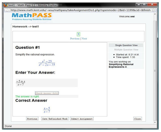 - Su, W.; Li, L.; Cai, C.; Wang, P.S. An intelligent mathematics assessment system. In Proceedings of the 2009 International Conference on Computational Intelligence and Software Engineering, Wuhan, China, 11–13 December 2009; pp. 1–4. [Google Scholar]