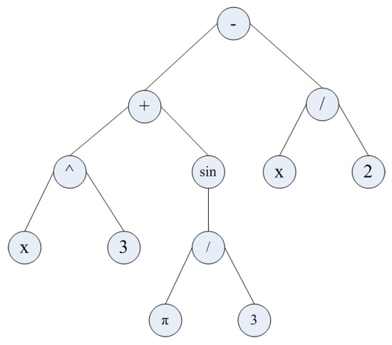From the view of syntax composition, a mathematical expression could consist of three elements: operators (functions), operands, and combination rules for operators and operands. For example, the expression (3) contains five operators (, +, −, /, ⌃), four operands (x, 3, 2, ) and a combination rule, as shown in the Figure 3. Thus, the representation complexity of a mathematical expression is calculated as the sum of the storage length of operands, operators and combination rule. In the paper, we use binary as the storage length unit.