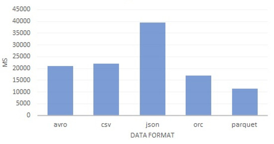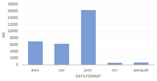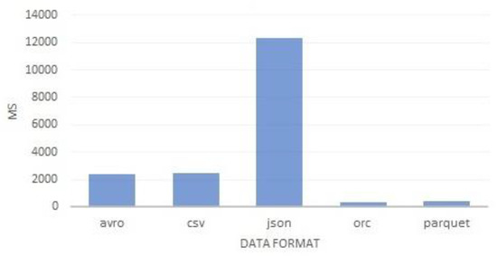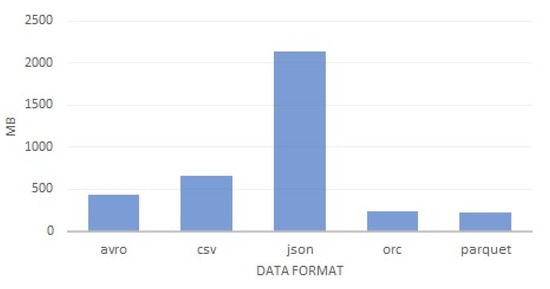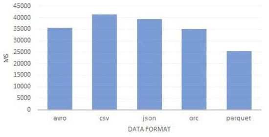 Papers [19,20,21,22,23,24] present studies of big data storage formats, such as avro, parquet, orc, etc. These studies represent the results of studying different formats in terms of performance, or choosing an alternative for specific purposes. For example, the authors in [23] study data storage formats for storing data in web systems or data for research in bioinformatics, respectively. These are highly specialized studies for specific tasks. Study [24] addresses a problem similar to the current study. However, this study only affects the avro and parquet storage formats and indirectly talks about other data storage formats.