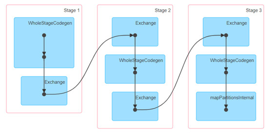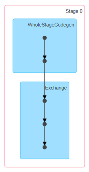 To further compare the storage formats of big data, let us analyze the algorithms used by the framework for each operation for each data storage format. It should be understood how the framework works with each data storage format. To obtain statistical information on the operation of the algorithm, the Spark Web User Interface tool built into the main framework [32] was used, which collects information about the operation of the application.