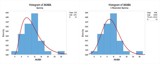 Figure 1 and Figure 2 show that the shape of the histogram of data RIM and RMM have a pattern similar to the gamma three-parameters compared with the two parameters; this is due to the role of the location parameter gamma distribution of three-parameters, namely, shifting the distribution in the horizontal axis.