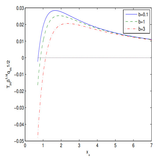 According to Figure 2 the Hawking temperature is positive in some range of the event horizon radii . When the Hawking temperature is negative the BH does not exist. Making use of equation we obtain the BH gravitational mass