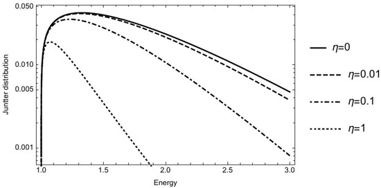 as the density of states in Jüttner statistics in the presence of GUP. Figure 2 shows the behavior of for some positive values of parameter.