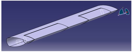 The properties of the material are diversified according to the type of element and the type of problem to analyze. The mechanical characteristics of the material/materials used are defined. For the analysis of elastic structures, restrictions are necessary on the movements of translation and rotation with known values. To analyze the elastic mechanical structures, the loading of the model is carried out by inserting concentrated forces in knots and/or normal pressures in the centers of the faces of the finished elements or moments. Figure 8 shows the 3D model of the wing with a symmetrical profile realized from duralumin. The introduction of the values of the material characteristics necessary for the analysis with finite elements is done using the material library of the CATIA software, from which the metallic material from duralumin is chosen, with the following characteristics: Young’s modulus = 7.31 × 1010 N/m2, Poisson ratio = 0.33, density = 2790 kg/m3.