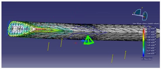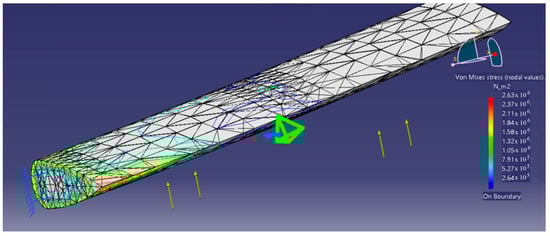 Equivalent Von Misses stress in the flap with the symmetric aluminum profile is presented in Figure 16, the maxim value being 2.63 × 106 N/m2.