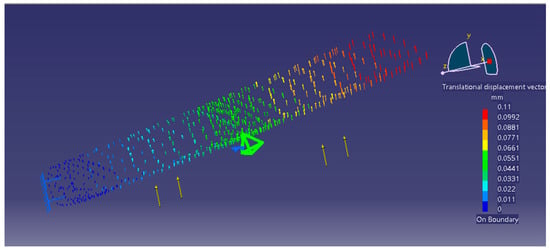 The displacement field in the flap with the symmetric aluminum profile is presented in Figure 15. The maxim displacement is 0.011 mm to the extremity free of the flap from aluminum.