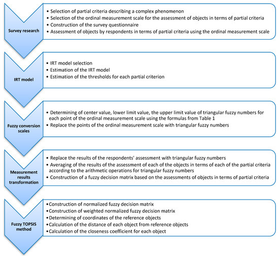 The research process using the proposed approach to the construction of fuzzy conversion scales and the fuzzy TOPSIS method was summarized in the form of a flow chart (Figure 2).