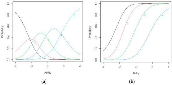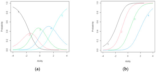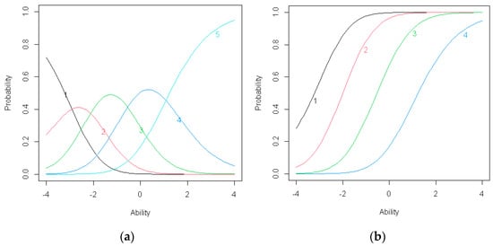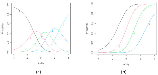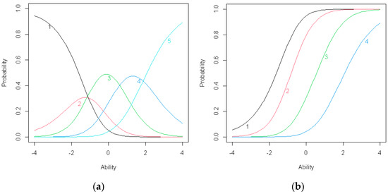 - Muraki, E. A generalized partial credit model: Application of an EM algorithm. Appl. Psychol. Meas. 1992, 16, 159–176. [Google Scholar] [CrossRef]