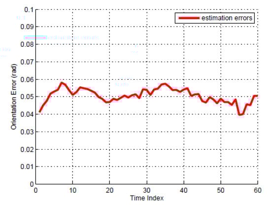 We also calculated the orientation estimate errors and the results of the same 100 Monte Carlo simulations are shown in Figure 3. As we can observe, these errors varied around 0.05 radians.
