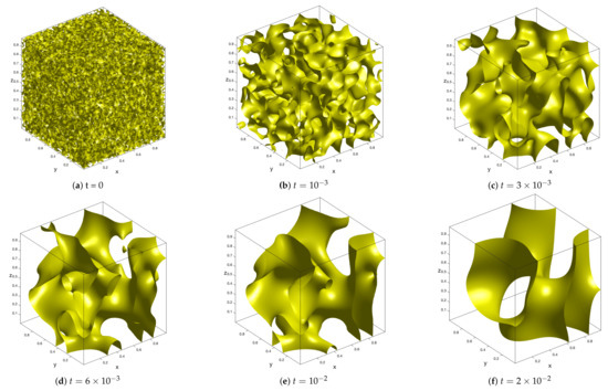 - Choi, J.W.; Lee, H.G.; Jenog, D.; Kim, J. An unconditionally gradient stable numerical method for solving the Allen–Cahn equation. Physica A 2009, 388, 1791–1803. [Google Scholar] [CrossRef]