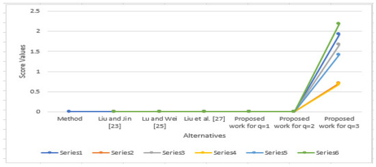 Additionally, a comparative analysis of the explored operator with some existing operators was done to examine the reliability and effectiveness of the proposed approach. The comparative analysis is based on information in Table 1, Table 2 and Table 3. The existing operators are as follows: Liu and Jin [21] explored the notion of aggregation operator based on intuitionistic uncertain linguistic variables. Lu and Wei [22] presented the theory of Pythagorean uncertain linguistic aggregation operators, and Liu et al. [23] explored the theory of q-rung orthopair uncertain linguistic aggregation operators.