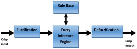 A fuzzy inference system (FIS) is a vital part of fuzzy logic control. Mamdani and Assilian [] proposed that complex processes could be controlled using fuzzy logic rather than the conventional strict models. A fuzzy logic control uses conditional sentences, called inferences, to illustrate the logic characterized by membership functions. Figure 2 shows the fuzzy logic control system. Initially, the crisp values are taken as inputs. The three essential components of FIS are (i) fuzzification, (ii) fuzzy inference engine, and (iii) defuzzification.
