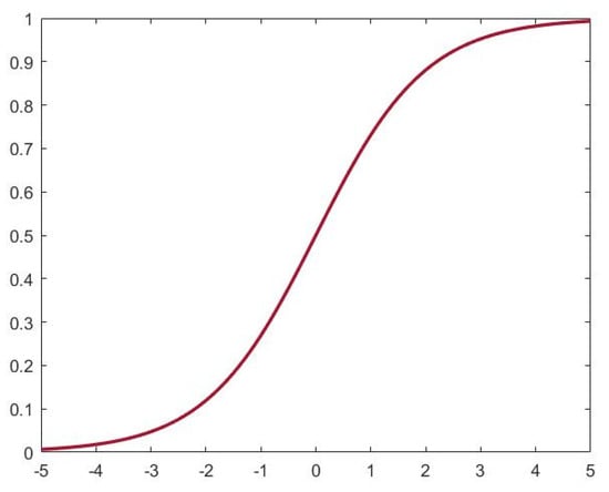 The sigmoid function is used here to determine the pheromone enhancement. Sigmoid functions have a natural ‘S’ shaped curve, with an interval from 0 to 1. From mechanical observations, it could be inferred that the sigmoid function curve was similar to that of a path with smooth turns []. An example of the sigmoid function is shown in Figure 8.