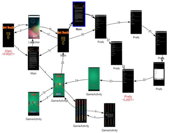 - Baek, Y.-M.; Bae, D.-H. Automated model-based Android GUI testing using multi-level GUI comparison criteria. In Proceedings of the 31st IEEE/ACM International Conference on Automated Software Engineering, Singapore, 3–7 September 2016; pp. 238–249. [Google Scholar]