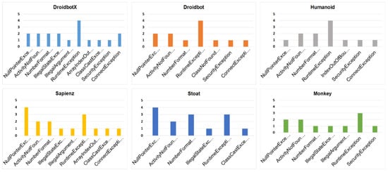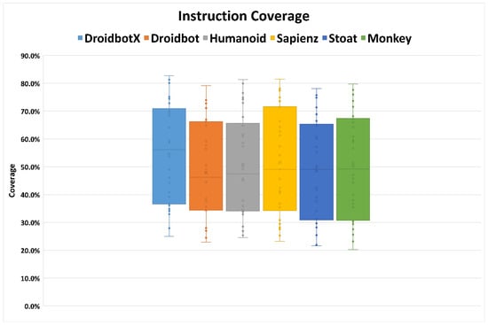 Android operates on 85% of mobile phones with over 2 billion active devices per month worldwide [1]. The Google Play Store is the official market for Android applications (apps) that distribute over 3 million Android apps in 30 categories. For example, it provides entertainment, customization, education, and financial apps [2]. A previous study [3] indicated that a mobile device, on average, has between 60 and 90 apps installed. Besides, an Android user, on average spends 2 h and 15 min on apps every day. Therefore, checking the app’s reliability is a significant task. Recent research [2] showed that the number of Android apps downloaded is increasing drastically every year. Unfortunately, 17% of Android apps were still considered to be low-quality apps in 2019 [4]. Another study found that 53% of users would avoid using an app if the app crashed [5]. A mobile app crash not only offers a poor user experience but also negatively impact the app’s overall rating [6,7]. The inferior quality of Android apps can be attributed to insufficient testing due to its rapid development practice. Android apps are ubiquitous, operating in complex environments, and evolve under market pressure. Android developers neglect appropriate testing practices as they consider it time-consuming, expensive, and involving a lot of repetitive tasks. Mobile app crashes are evitable and avoidable by intensive and extensive testing of mobile apps [6]. Through a graphical user interface (GUI), mobile app testing verifies the functionality and accuracy of mobile apps before these apps are released to the market [8,9,10]. Automated mobile app testing starts by generating test cases that include event sequences of the GUI components. In the mobile app environment, the test input (or test data) will be based on user interaction and system interaction (e.g., apps notification). The development of GUI test cases usually takes a lot of time and effort because of their non-trivial structures and highly interactive nature of GUIs. Android apps [11,12] usually possess many states and transitions, which can lead to an arduous testing process and poor testing performance for large apps. Over the past decade, Android test generation tools have been developed to automate user interaction and system interaction as inputs [13,14,15,16,17,18]. The purpose of these tools is to generate test cases and explore the app’s functions by employing different techniques. These techniques are random-based, model-based, systematic based, and reinforcement learning. However, there are issues with low code coverage of existing tools [11,19,20], due to the inability to explore app functions extensively because some of the app functions can only be explored through a specific sequence of events [21]. Such tools must not only choose which GUI component to interact with but also which type of input to perform. Each type of input for each GUI component is likely to improve coverage. Coverage is an important metric to measure the efficiency of testing [22]. Combining different granularities from instruction, method, and activity coverage is beneficial for better results in testing Android apps. The reason is that activities and methods are vital to app development, so the numeric values of activity and method coverage are intuitive and informative [23]. Activity is the primary interface for user interaction and an activity comprises several methods and underlying code logic. Each method in every activity comprises a different number of lines of code. Instruction coverage provides information about the amount of code that has been executed. Hence, improving instruction and method coverage ensures that more of the app’s functionalities associated with each activity are explored and tested [23,24,25]. Similarly, activity coverage is a necessary condition to detect crashes that can occur when interacting with the app’s UI. The more coverage the tool explores, the more likely it would discover potential crashes [26].