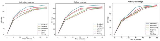 There are threats and limitations to the validity of our study. Threats to internal validity, the non-deterministic approach of the tools results in obtaining different coverage for each run. Thus, multiple runs were executed to reduce this threat and to remove outliers that could affect the study critically. Each testing tool was allowed to run five times, and the test results were recorded and then computed to yield an average result of final coverage and progressive coverage of the tools. Another threat to the internal validity of our study is Acvtool’s instrumentation effect, which affects the integrity of the results obtained. These may be caused by errors triggered by Acvtool’s incorrect handling of the binary code or by errors in our experimental scripts. To mitigate this risk, the traces of our experiments for the subject apps were manually inspected.