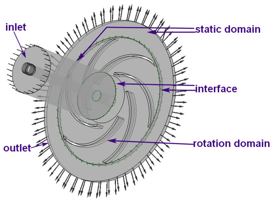 Figure 5. Calculation domain and boundary conditions of centrifugal pump impeller.