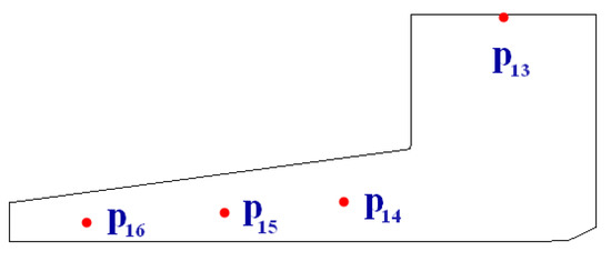 In order to investigate the evolution of pressure fluctuation in the impeller axial plane, four monitoring points, including one point in the impeller inlet and three points in the impeller passages, are selected, as shown in Figure 15.