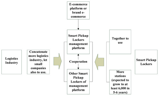 Strategy promotion: (1) combine with the electric business, push the cargo flow service mode to the lockers; (2) cooperate with communities and buildings to establish smart pickup lockers, as shown in Figure 3 [27].