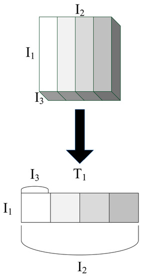 For example, the third order tensor T is expanded into a matrix, which is to rearrange the tensor T into a matrix according to n-norm. The 1-norm expansion matrix of the third-order tensor t is shown Figure 1, where , and represent the three dimensions of the third-order tensor, .