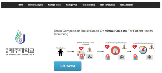 Figure 4 represents the developed health monitoring application using the task composition toolkit based on intelligent task mapping. The service analysis menu is used for health monitoring services, and the manage tasks menu is used for tasks level management. Task mapping menu provides task mapping scheme interface. Task scheduling menu visualizes tasks virtual objects ordered pairs using timeline chart. Task allocation represents task deployment results of elderly patient health monitoring services.