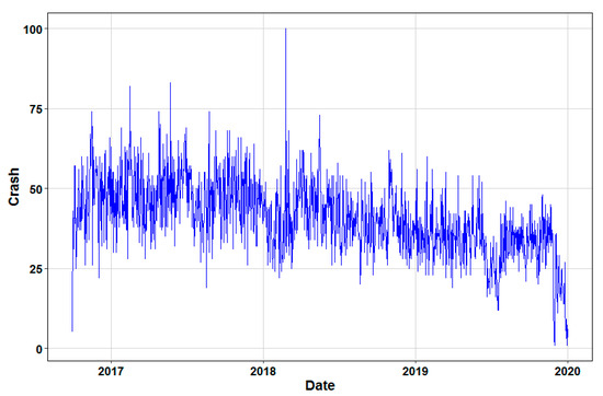 Temporal variations of observed crashes during the study period.