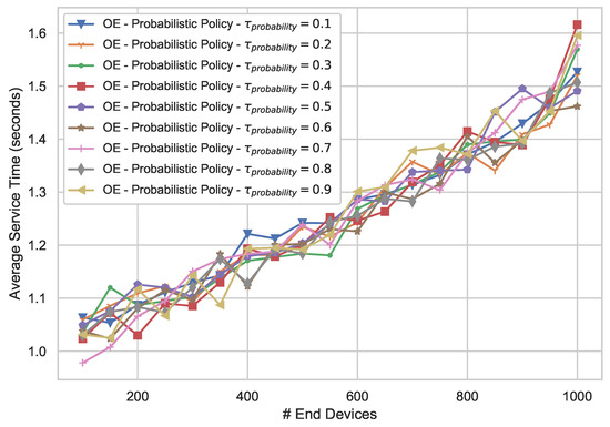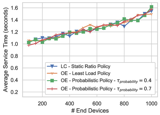 Offloading strategies, as a core phase, are making a vital impact on the appearance of offloading. As shown in Figure 6, the service time of adopting Probabilistic Policy fluctuates obviously but approximately hovers around the Least Load Policy, or sometimes in between Static Ratio Policy and Least Load Policy. This trend means that the stability of Probabilistic Policy is yet weaker than that of Least Load Policy and still needs further improvement on task dispatching.