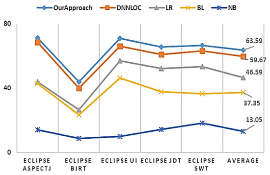 - NB (Naïve Bayes) [31] uses the version, platform, and priority information of the analyzed bug report, and learns the Naïve Bayes algorithm to predict buggy source code files.