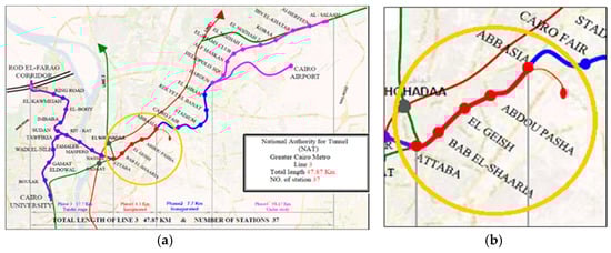 (a) The Greater Cairo Metro-Line 3, after National Authority for Tunneling; (b) zone of the study [33].