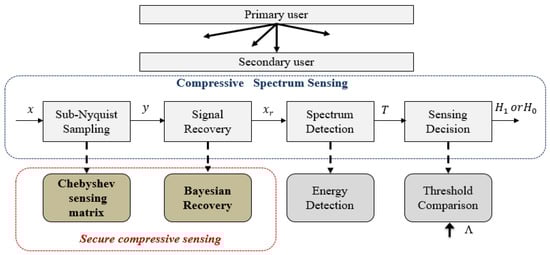 - Benazzouza, S.; Ridouani, M.; Salahdine, F.; Hayar, A. A Secure Bayesian Compressive Spectrum Sensing Technique Based Chaotic Matrix for Cognitive Radio Networks. In Proceedings of the IEEE International Conference on Information Assurance and Security (IAS 2020), 15–18 December 2020; Available online: https://www.researchgate.net/publication/346572030_A_Secure_Bayesian_Compressive_Spectrum_Sensing_Technique_Based_Chaotic_Matrix_for_Cognitive_Radio_Networks (accessed on 3 January 2021).