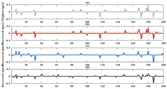 - Abo-Zahhad, M.M.; Hussein, A.I.; Mohamed, A.M. Compressive Sensing Algorithms for Signal Processing Applications: A Survey. Int. J. Commun. Netw. Syst. Sci. 2015, 8, 197–216. [Google Scholar]