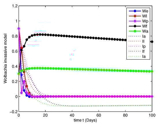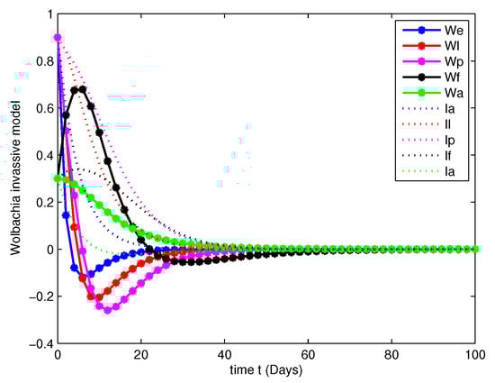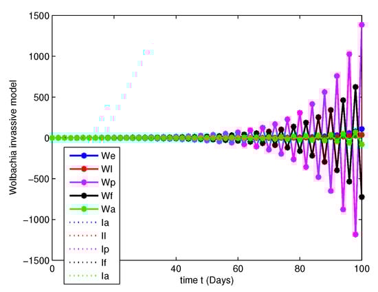 Appendix A.1. Wolbachia Infected Mosquitoes Free Equilibrium