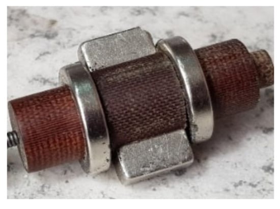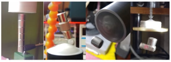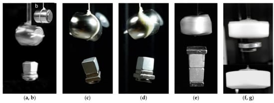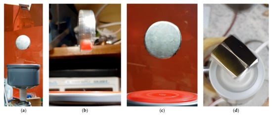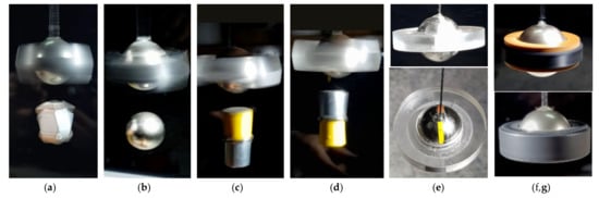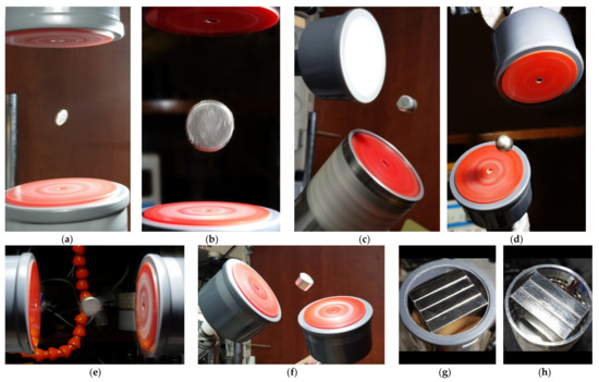 g) A setup where the floator rotates in opposite direction of the rotator at same speed without an enforcement. This floator consist of stack of two cylinders of ⌀10 × 10 mm. The same effect is present in the experiment in