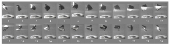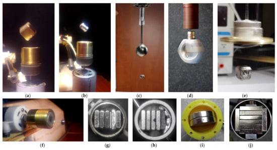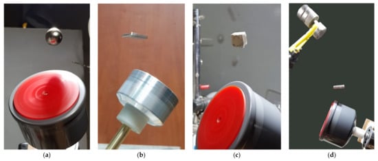 Summary of stability tests of conical motion of the body through simulations. Most of the configurations are tested using multiple static field strengths in order to evaluate their stability using this factor. Angular motion deviates from the equilibrium angle φ when the static torque coefficient τS is below a certain value. In this case, the motion axis still finds an equilibrium at a zenith angle λ with proper initial conditions. However, in these tests, initial conditions are given for the motion for λ = 0. For this reason, the motion cannot settle to the equilibrium angle λ, but oscillates around it since there is no friction. These oscillations are considered as an instability factor here. The data fits very well to the criterion for obtaining symmetric conical motion around axis-z given by Equation (51) where the values at column “Min. τS/τC” correspond to this equation. Results are characterized by the following criteria: (1) φ is constant (λ = 0) or has a sinusoidal curve, (2) φ varies with a complex cyclic curve, (3) φ ever increases, (4) φ oscillates with ever increasing amplitude, (5) φ varies but the simulation ran short for obtaining exact criterion.