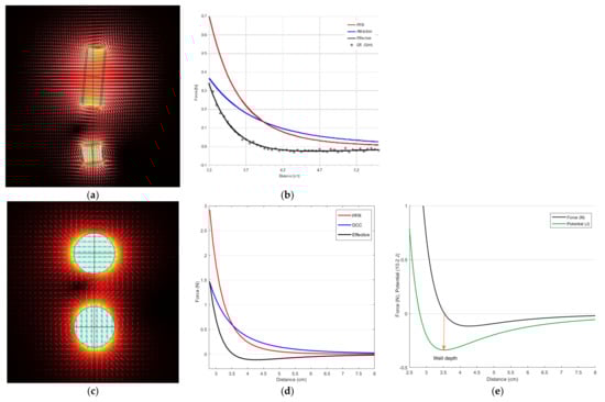 Results of curve fitting based on Equation (95) where x and f (x) data are, respectively the distance r and sin φ for data points corresponding to φ range. Force columns give normalized figures for the exact formula and the approximate formula for comparison purpose. Overall, the deviations are less than 0.5%.