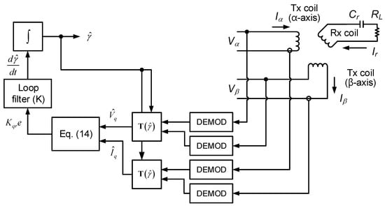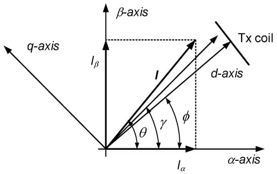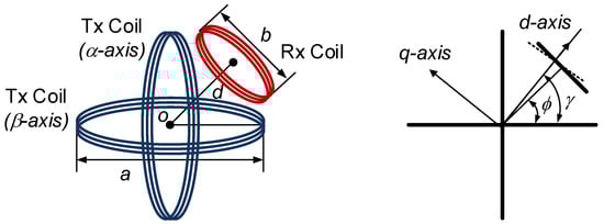 The self-inductances and reactance of the Tx circuits are defined as Lα = Lβ = L and , respectively, where ω denotes the frequency of the input voltages. The mutual inductances between in Tx and Rx coils are represented as and for the α- and β-axis, respectively. The mutual inductance between the α- and β-axis is assumed as zero because two Tx coils are orthogonal, as mentioned.