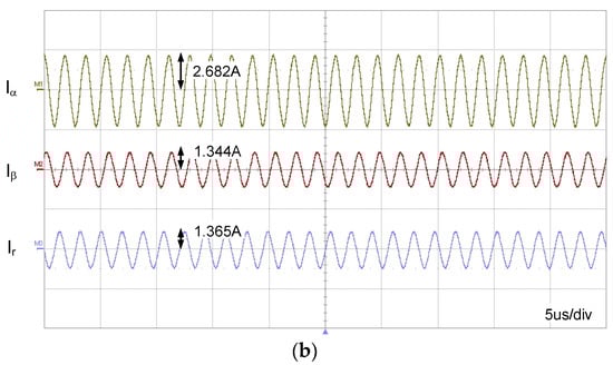 Experimental results for the 2D WPT system using the proposed estimator (d = 2 cm). (a) Input and output currents for . (b) Input and output currents for .