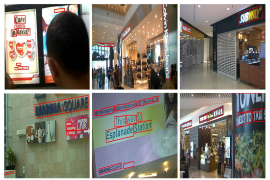 - Nayef, N.; Yin, F.; Bizid, I.; Choi, H.; Feng, Y.; Karatzas, D.; Luo, Z.; Pal, U.; Rigaud, C.; Chazalon, J.; et al. ICDAR2017 Robust Reading Challenge on Multi-Lingual Scene Text Detection and Script Identification–RRC-MLT. In Proceedings of the 2017 14th IAPR International Conference on Document Analysis and Recognition (ICDAR), Institute of Electrical and Electronics Engineers (IEEE), Kyoto, Japan , 9–12 November 2017; Volume 1, pp. 1454–1459. [Google Scholar] [CrossRef]