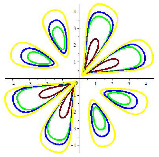 Actually it causes no surprise the similarity of these results with the ones describing the previous two dimensional case since both exhibit the -symmetry as it has been fully demonstrated and widely discussed by several authors (see references [9,18,19,20]).