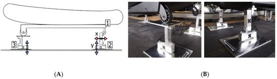 The horizontal x-oriented force sensors and the vertically oriented sensors–schematic representation (A); images of the sensors in the x orientation and y orientation (B).