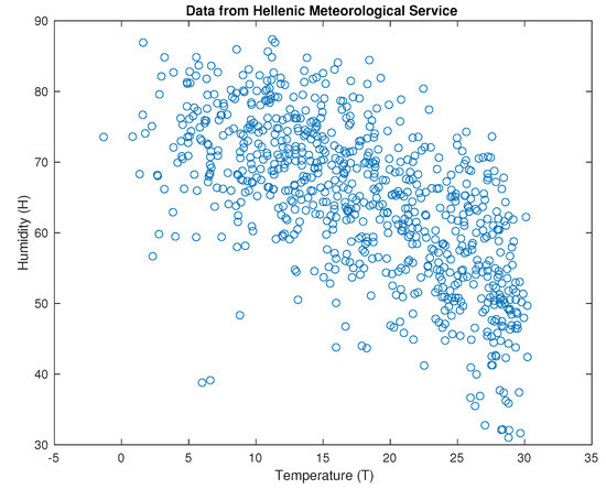 The data of the temperature and the humidity of the last five years 2015–2019 [1] were classified in ascending order (Figure 1).