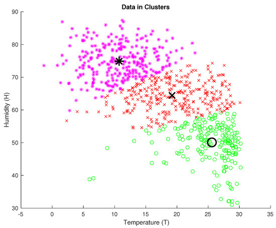 First of all the data have been classified in clusters by using the method Fuzzy c-means (FCM) [6]. Fuzzy c-means (FCM) is a data clustering technique where each data point belongs to a cluster to some degree that is specified by a membership grade (Figure 5) (see Reference [19,20], A.4).