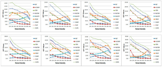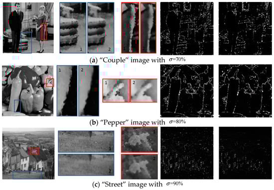 | Image | Method | σ = 10% | σ = 20% | σ = 30% | σ = 40% | σ = 50% | σ = 60% | σ = 70% | σ = 80% | σ = 90% |